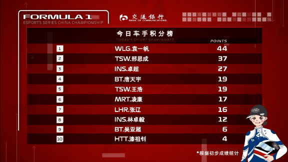 最终,TSW.邢思成复刻维斯塔潘的大满贯,获得正赛、杆位发车并理论上领跑每一圈。WLG.袁一帆第二名完赛,TSW.王浩第三名完赛,INS.卓超和LHR.张辽分列四五。西安MRT车手凌康第20位发车,最终追到第六名完赛,获得本场进步最快车手。